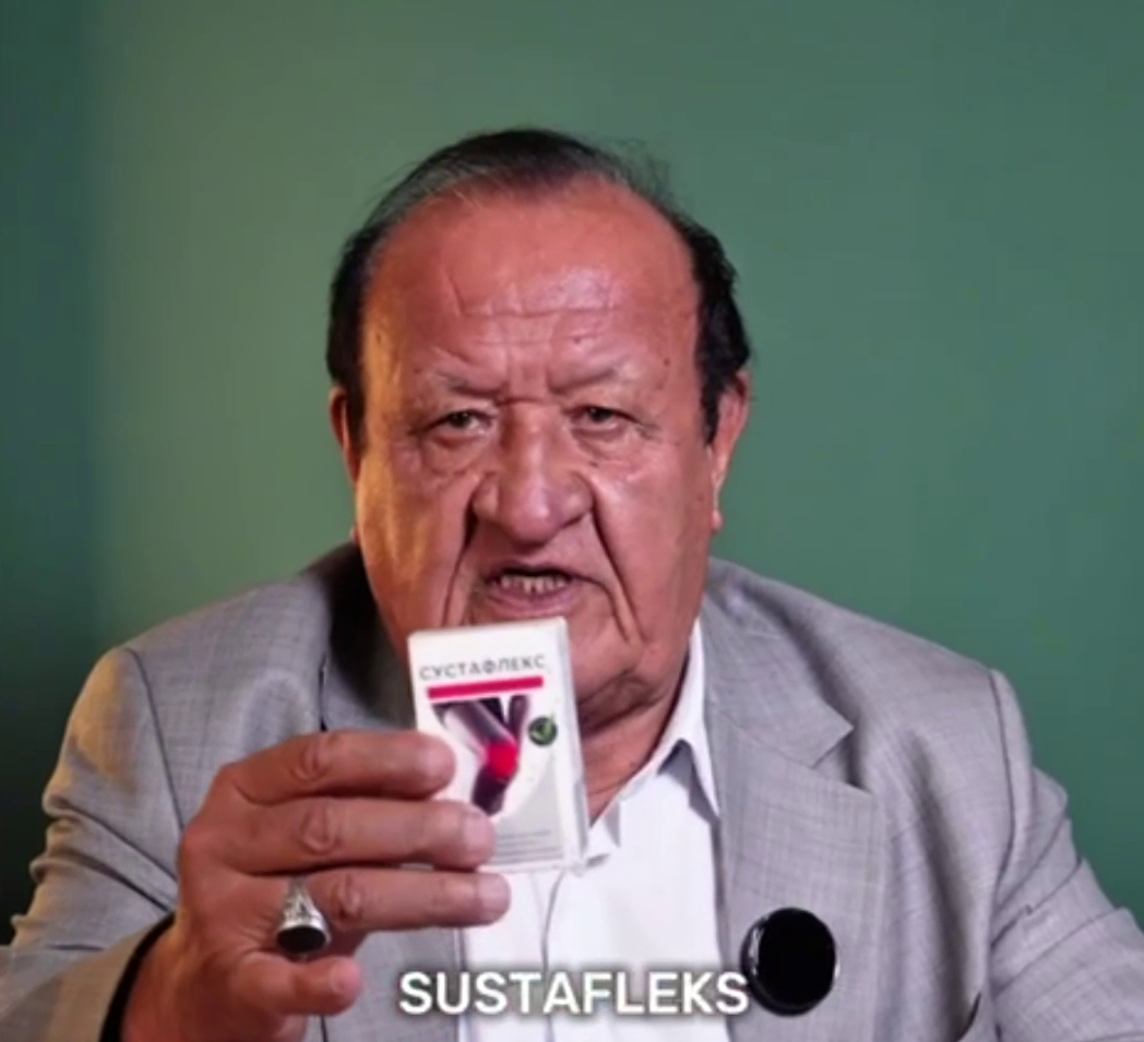С.М. Бубновский: Нафақат Эркинга, минглаб одамларга ёрдам берган. Бу – Сустафлекс. Бизнинг Ревматология илмий-тадқиқот институтимизнинг ишланмаси. Олимларимизнинг ноёб, инқилобий ишланмаси. Буткул табиий восита, бўғимларни ҳужайралар даражасида даволашга қодир. Бир курс қўллаганда, албатта.
